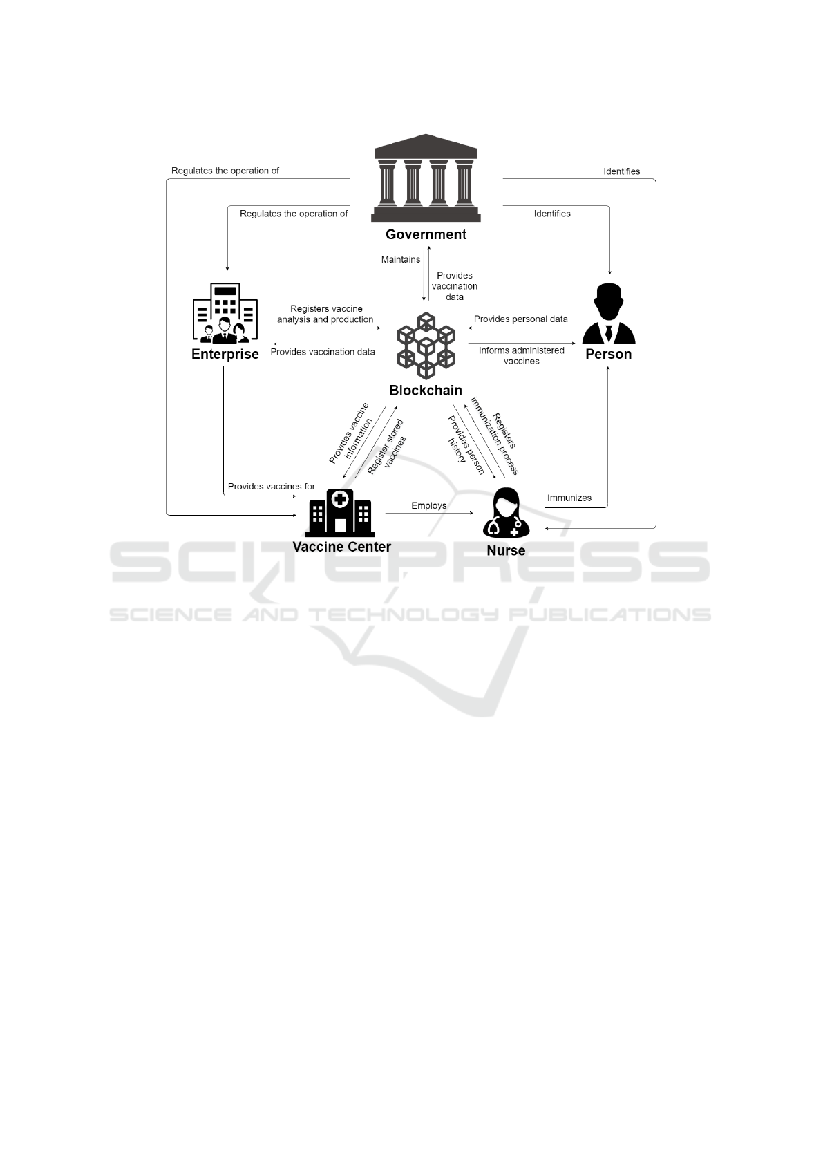 on Blockchain to manage vaccination data. We describe the roles played in a vaccination process as well