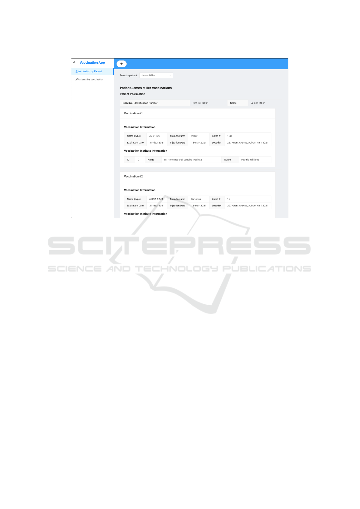 scenarios, including the registration of a vaccine administration and the visualization of the vaccination history