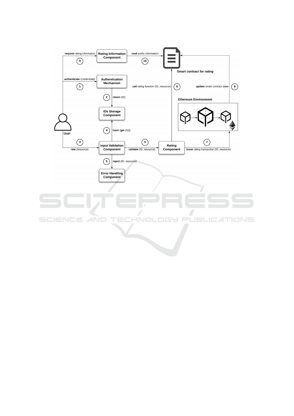 ing system. The smart contract handles the rating op-