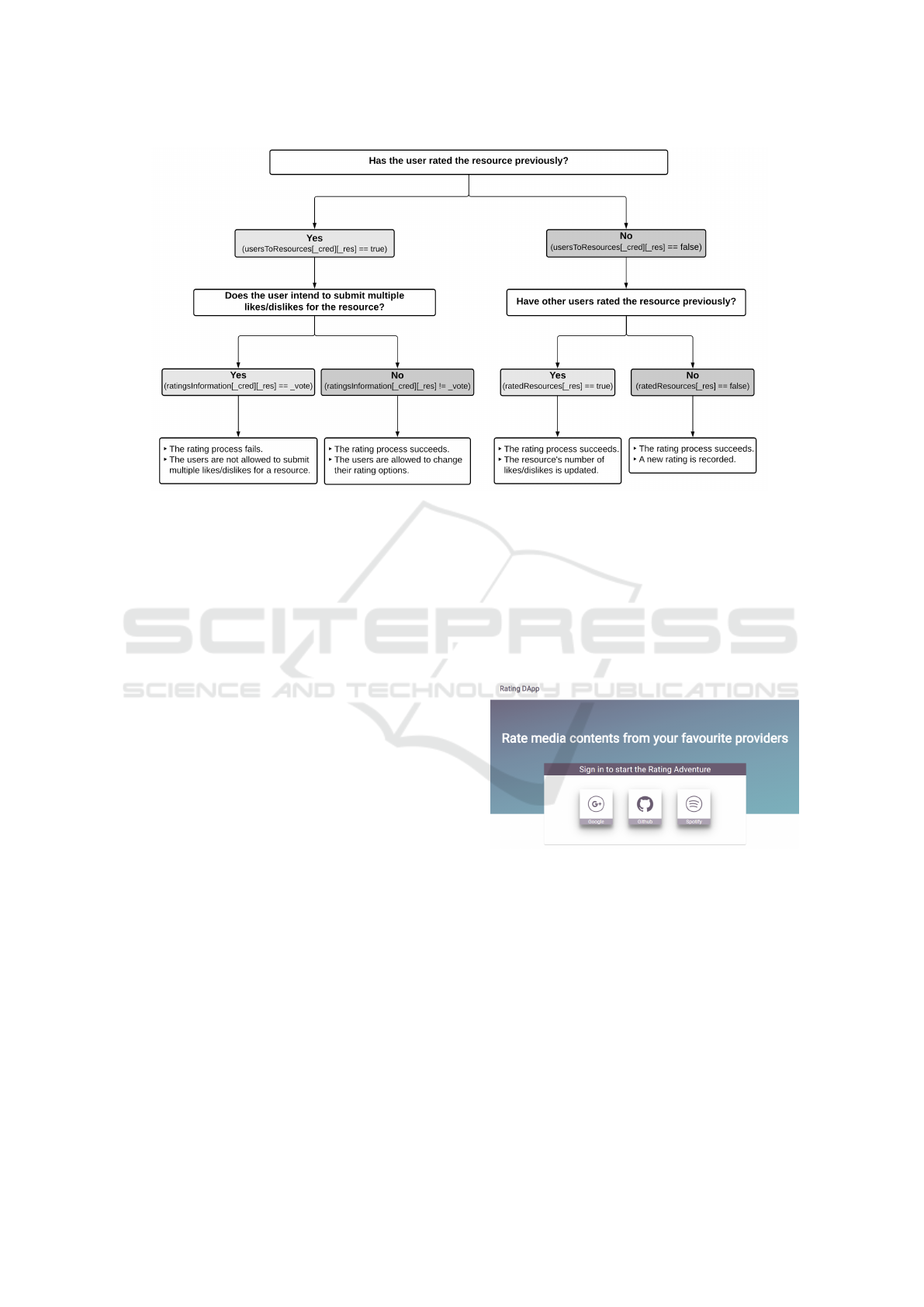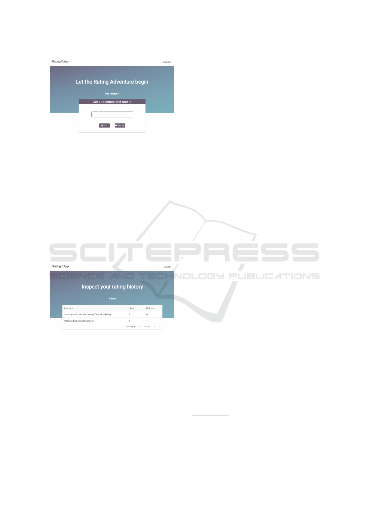 tribution, i.e., decentralized application for rating, is
