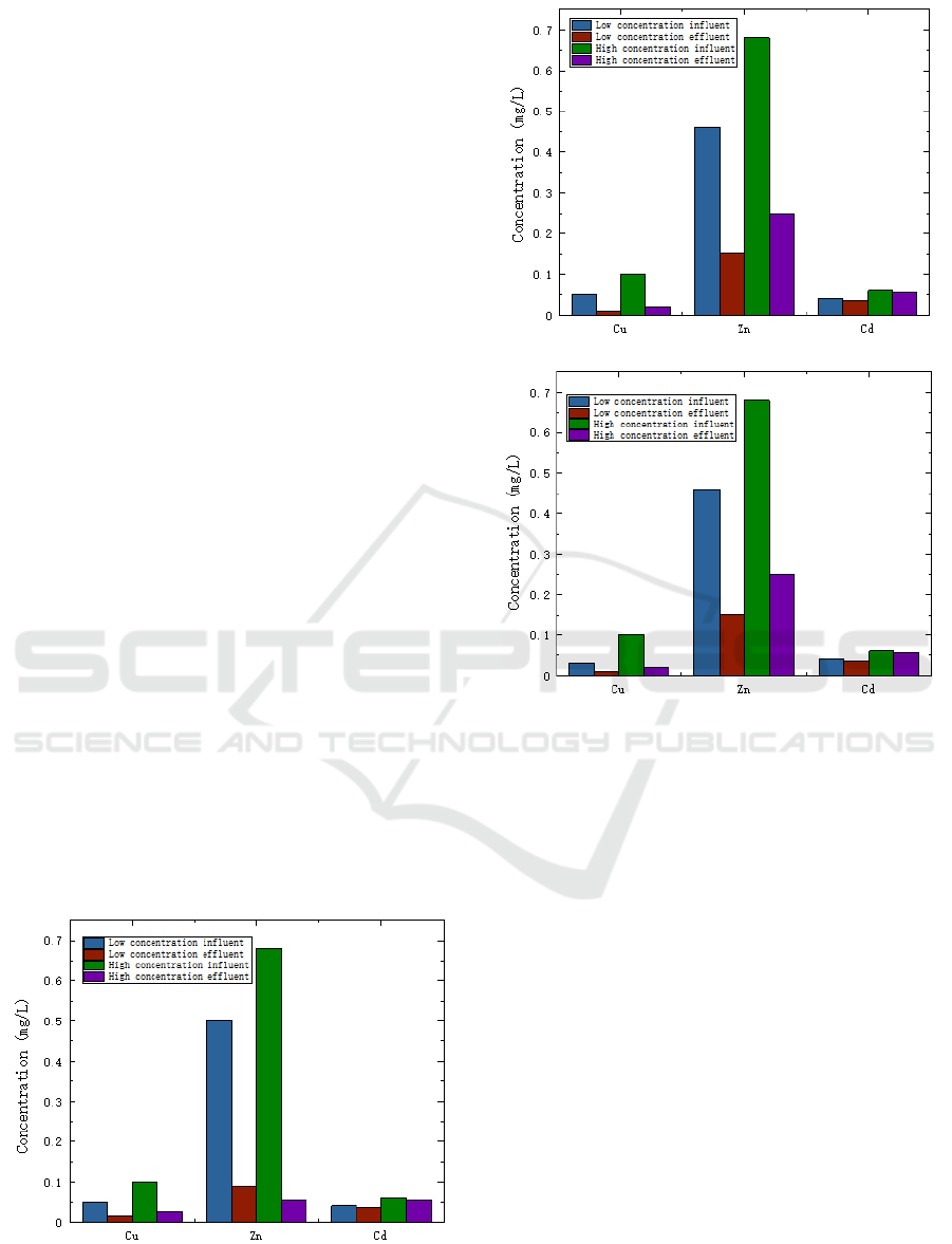 in bioretention facilities. The concentration changes of heavy metals in influent did not significantly change