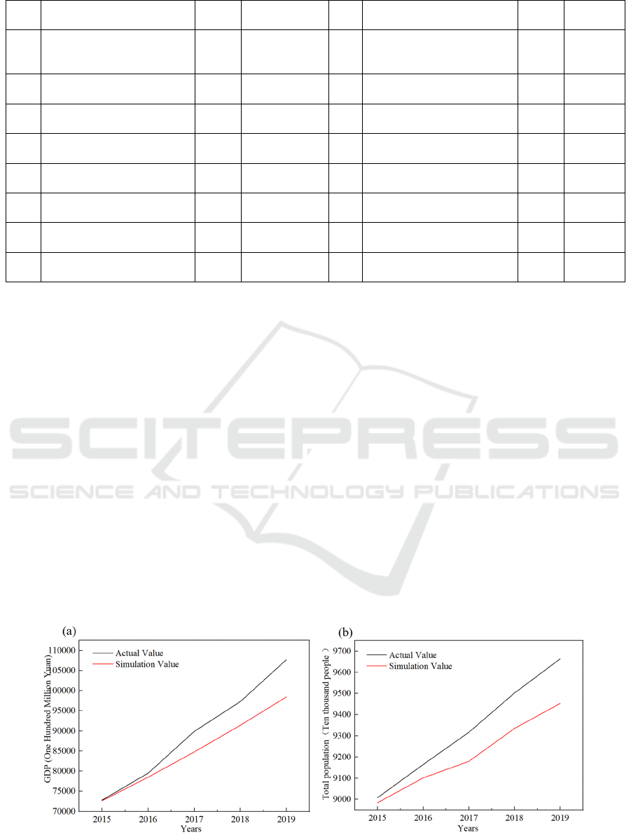 simulated value for the total population and GDP was