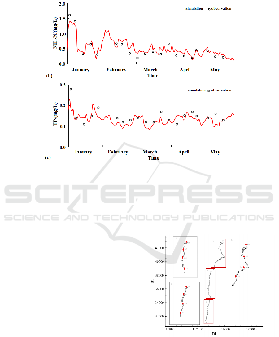 concentrations of TP in the upstream, midstream and
