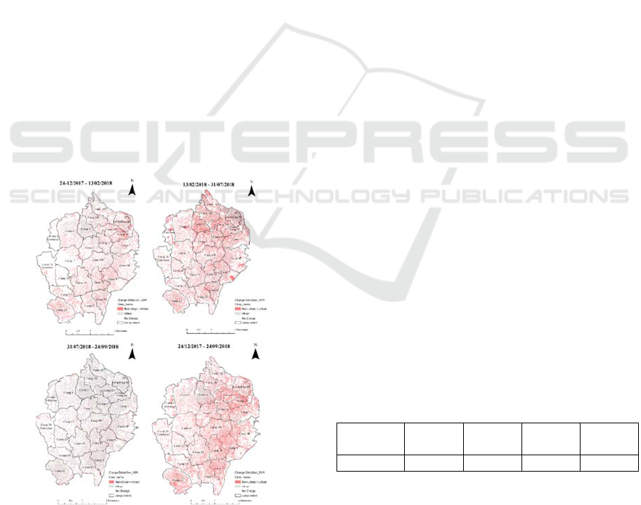 different dates to identify and calculate the urban