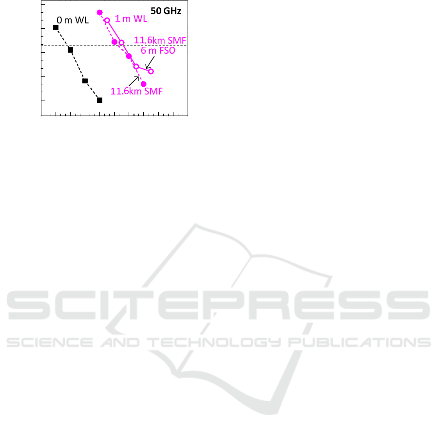 a modulated 50 GHz MMW carrier, which is then