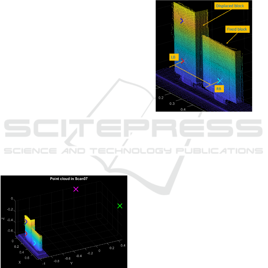 displacement of the target from laser scans acquired