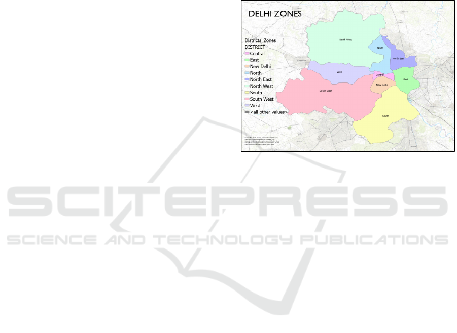 Figure 1: Map of Delhi, India is divided into 9 districts.