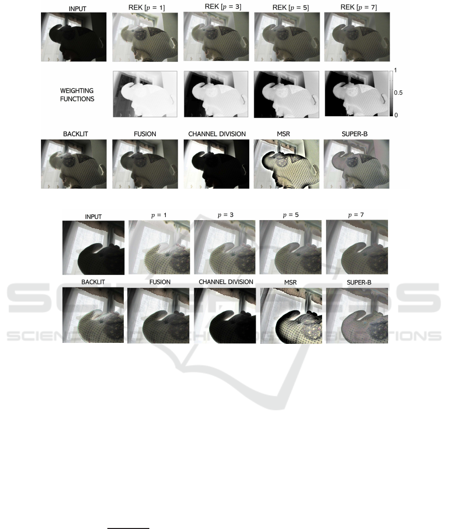 high values on the dark regions while low values on the bright ones. In this way, REK improves the quality