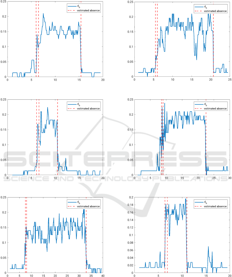 the absence is detected sharply, whereas in Subfigures