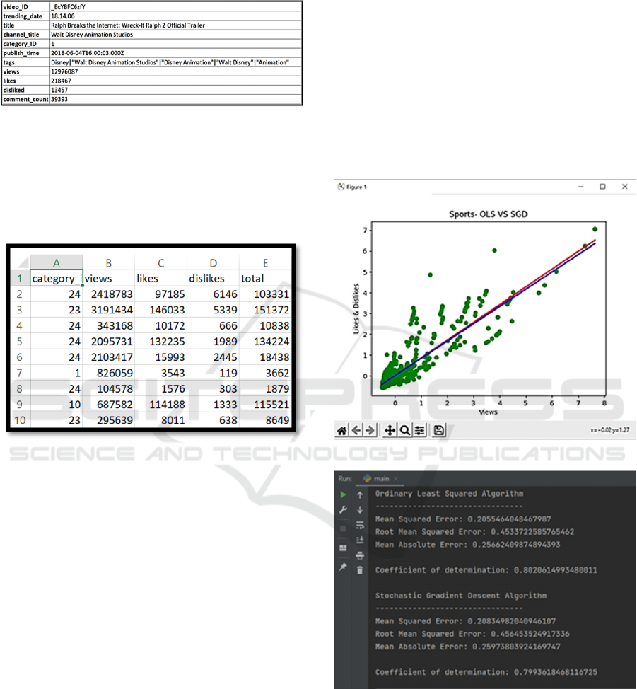 required – Category id, views, likes and dislikes. In a