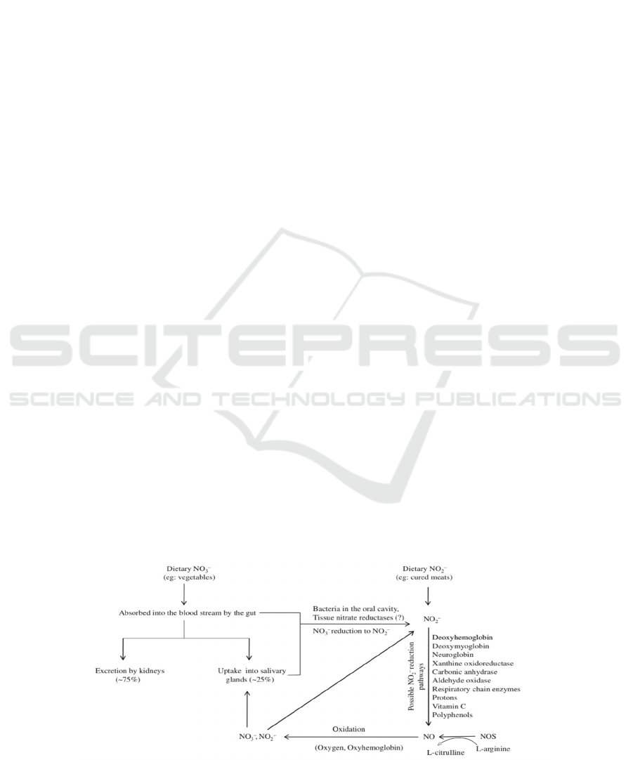 to nitrite by symbiotic bacteria in mouth. Because of