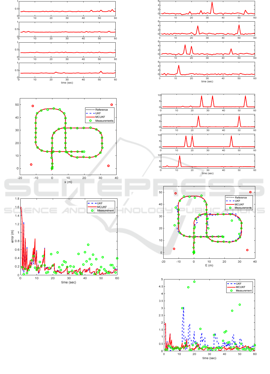 impulse error. Therefore, MCUKF is evaluated to be