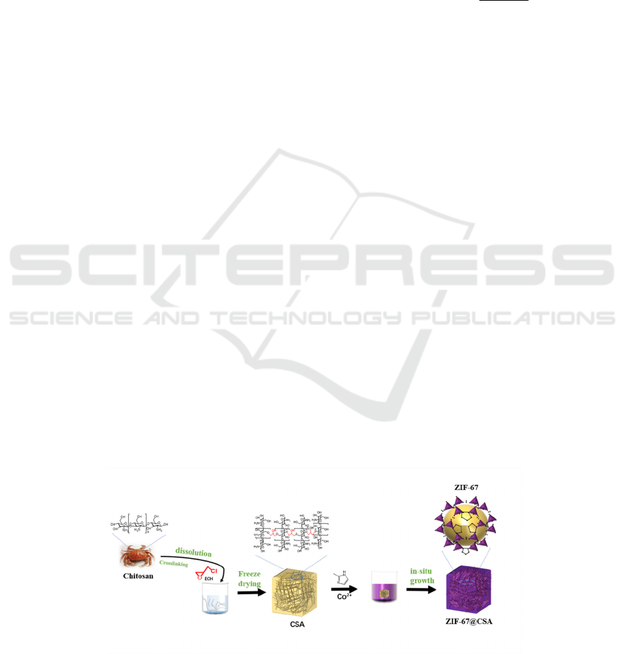 operation process. The zeolitic imidazolate framework-67@chitosan aerogel (ZIF-67@CSA) was prepared