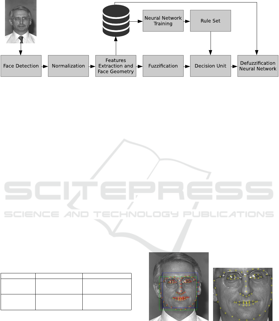 on the eyes, nose and jaw. In the second step, based on extracted features, neurofuzzy system recognizes to