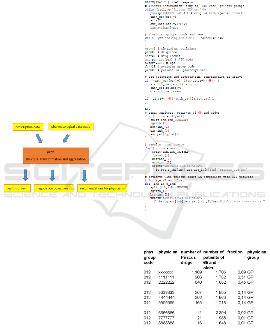Extracting Information and Identifying Data Structures in Pharmacological Big Data using Gawk