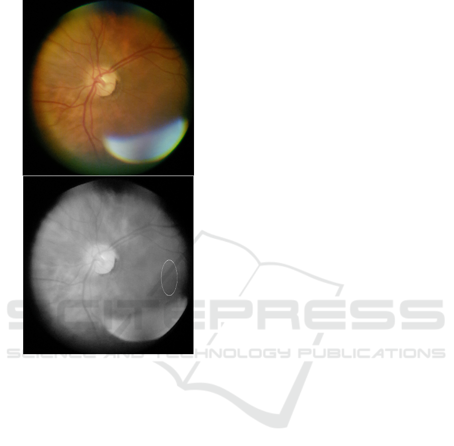 Figure 7: Retinal image with exudates. Right image high-