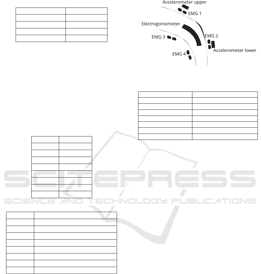 nals captured by two accelerometers, four EMG sen-