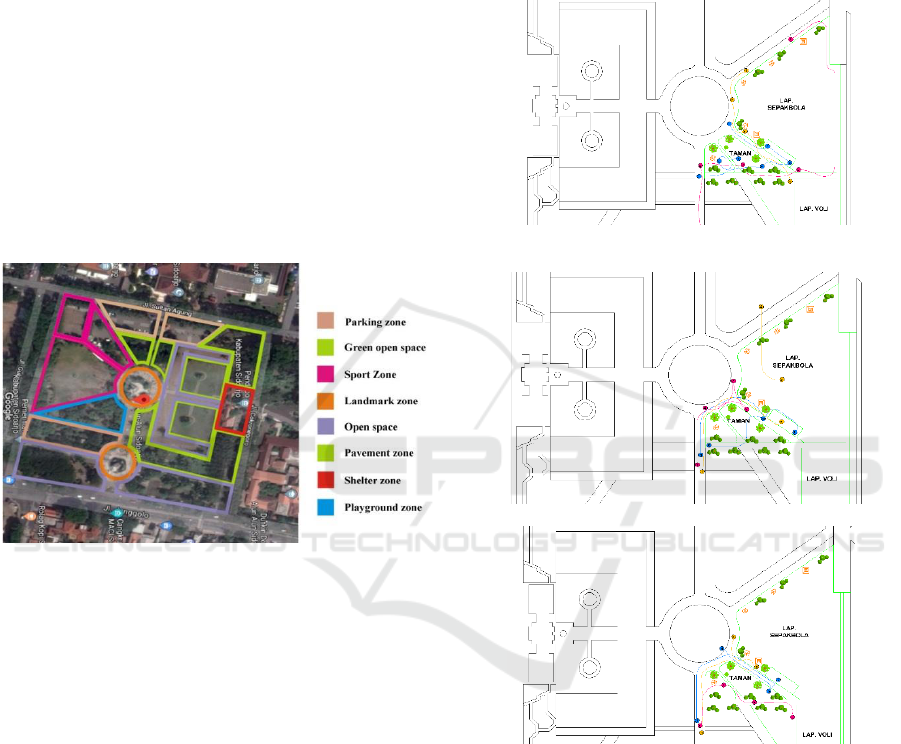 activities points, the Sidoarjo City Square also has a variety of user activity patterns, which are both suitable