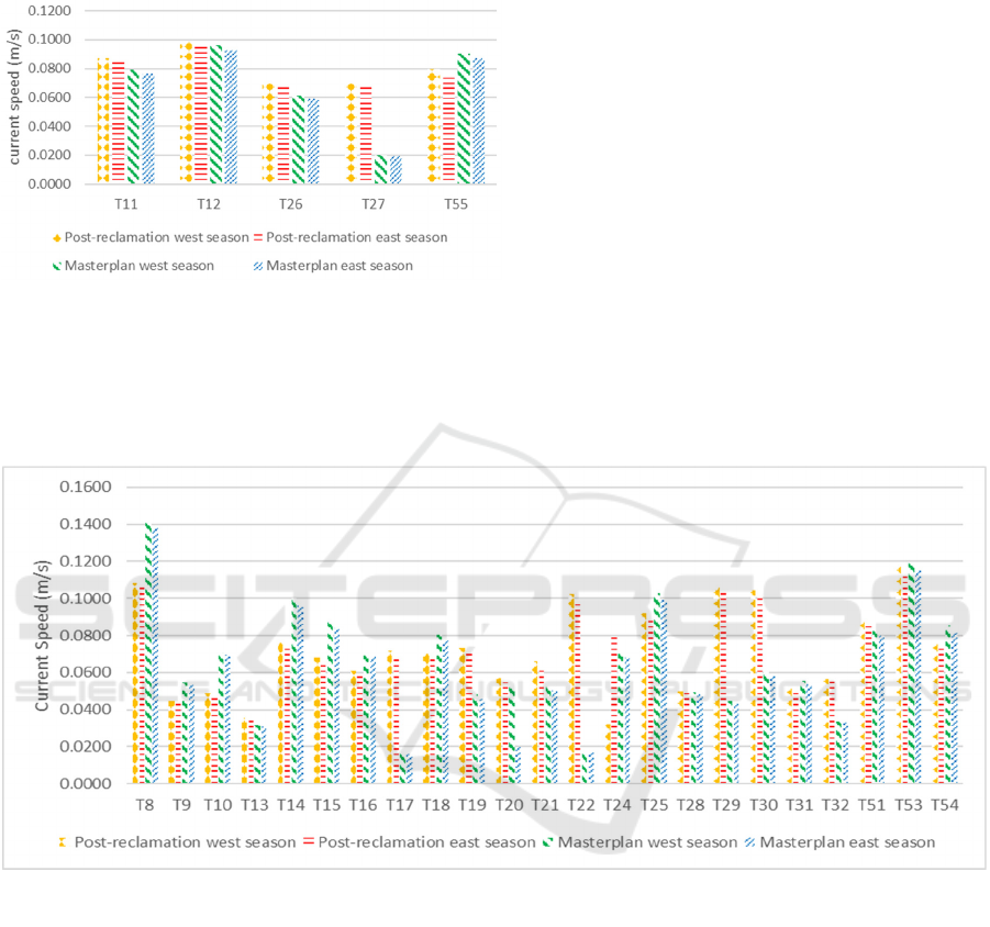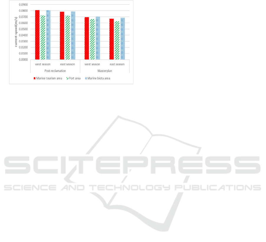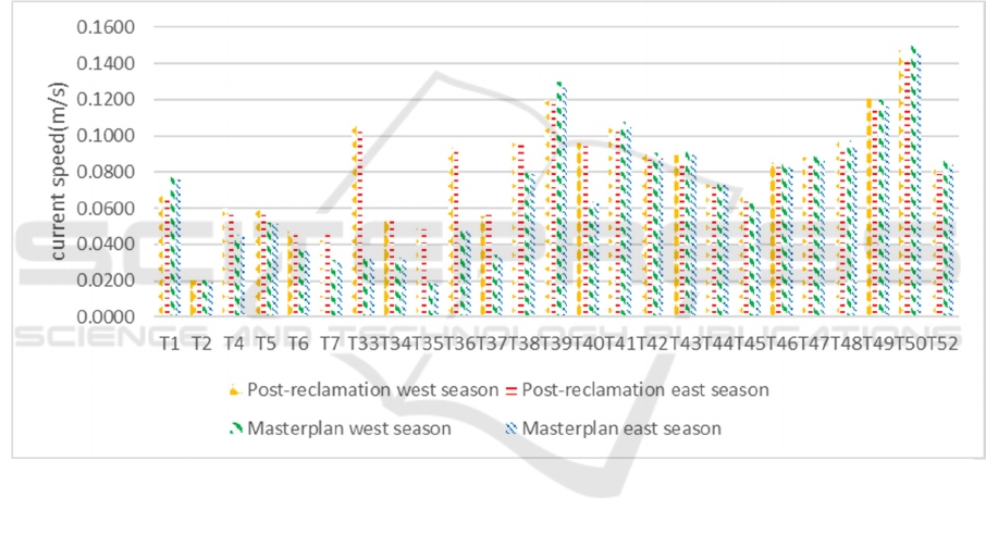 biota area, the current velocity in the post-reclamation