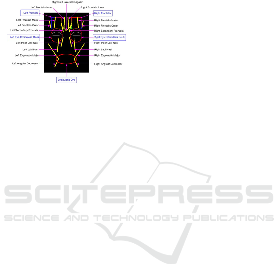 representation of the muscles and the facial model.