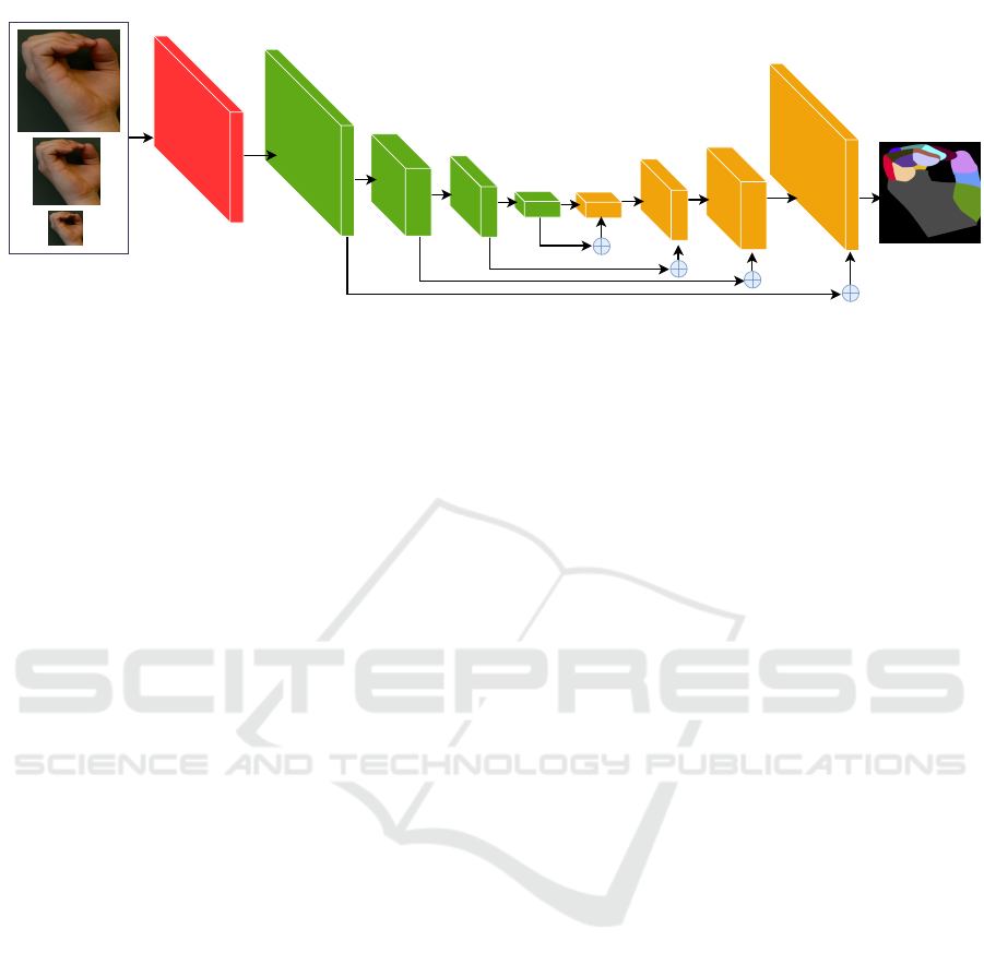 with skip-connections to predict the final segmenta-