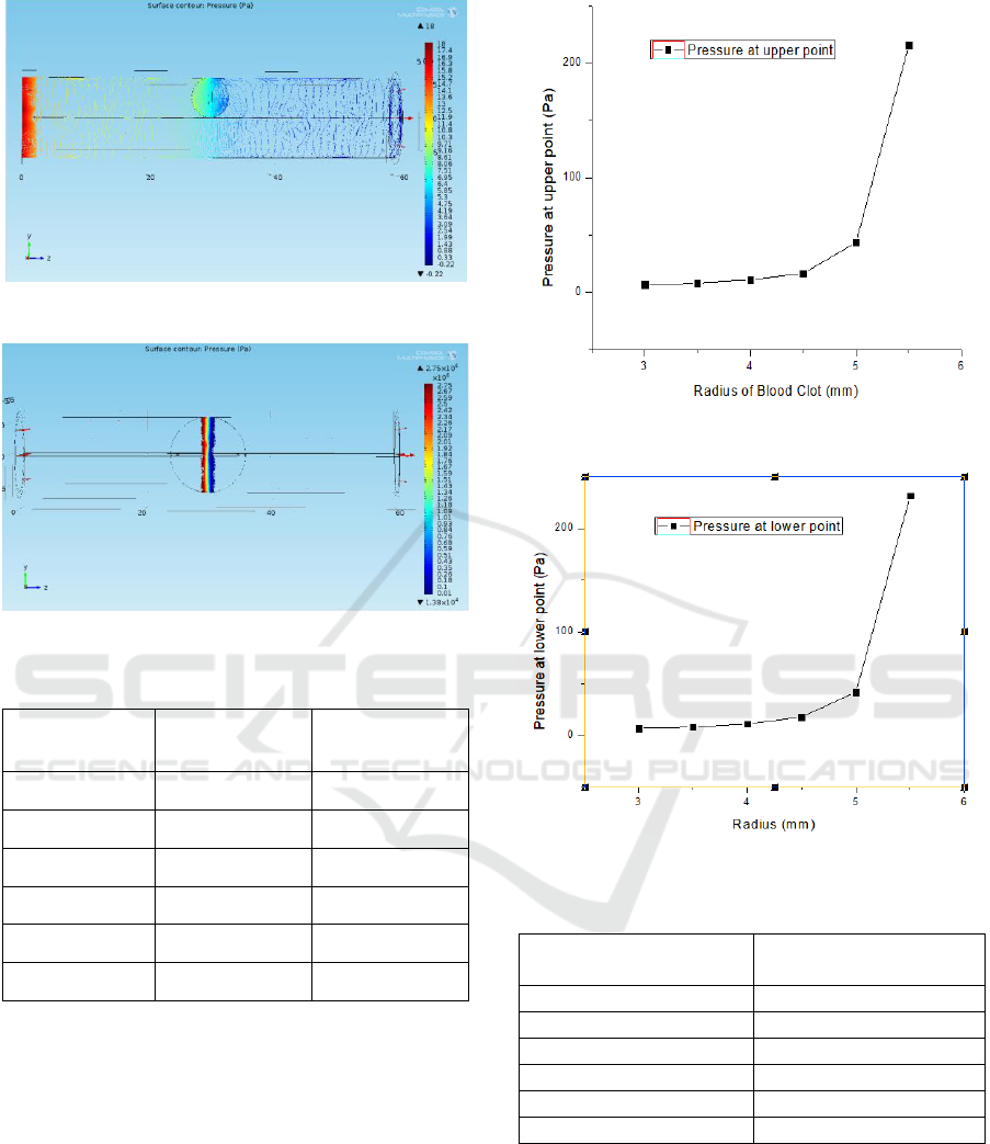 analyses the blood flow velocity, the pressure profile of blood clot and plaque, and the condition at which