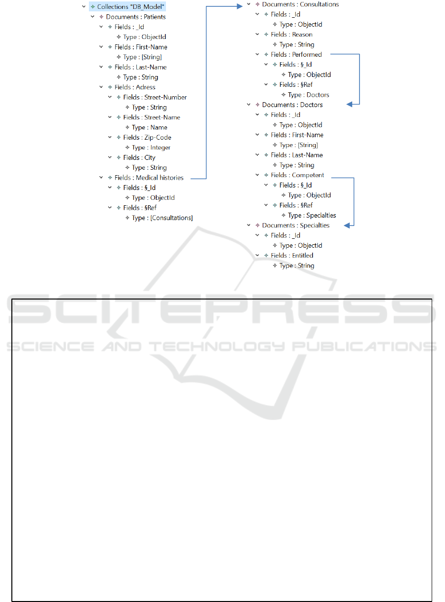 physical model of a database stored in MongoDB.