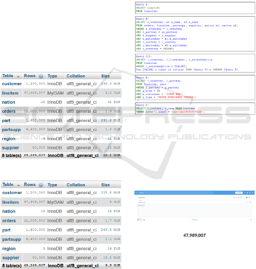 configured indexes and databases without indexes.