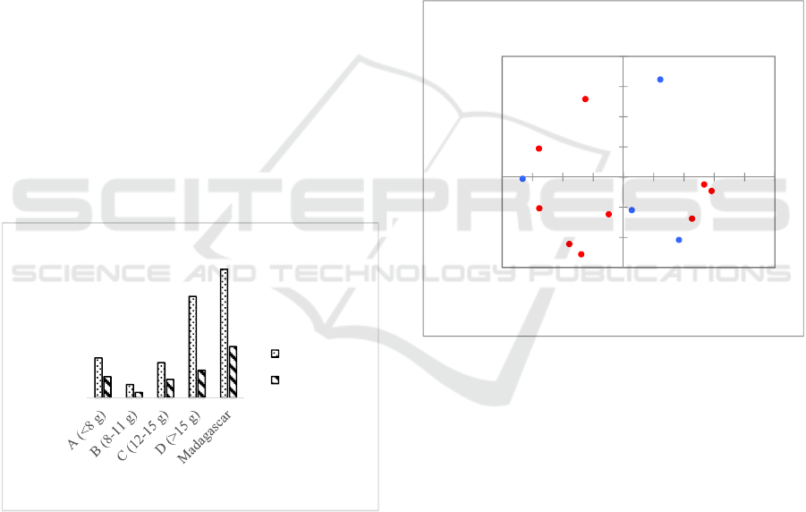 as the content of vanilin/glucovanilin. The size of the