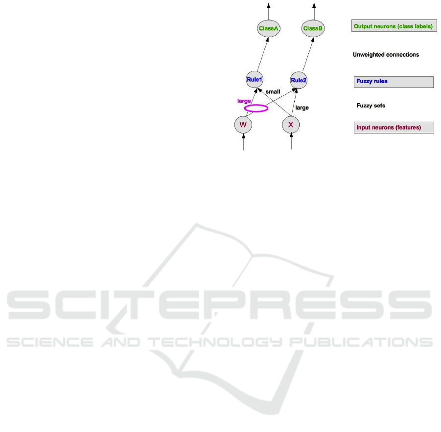 guistic values between neurons of input and rule lay-