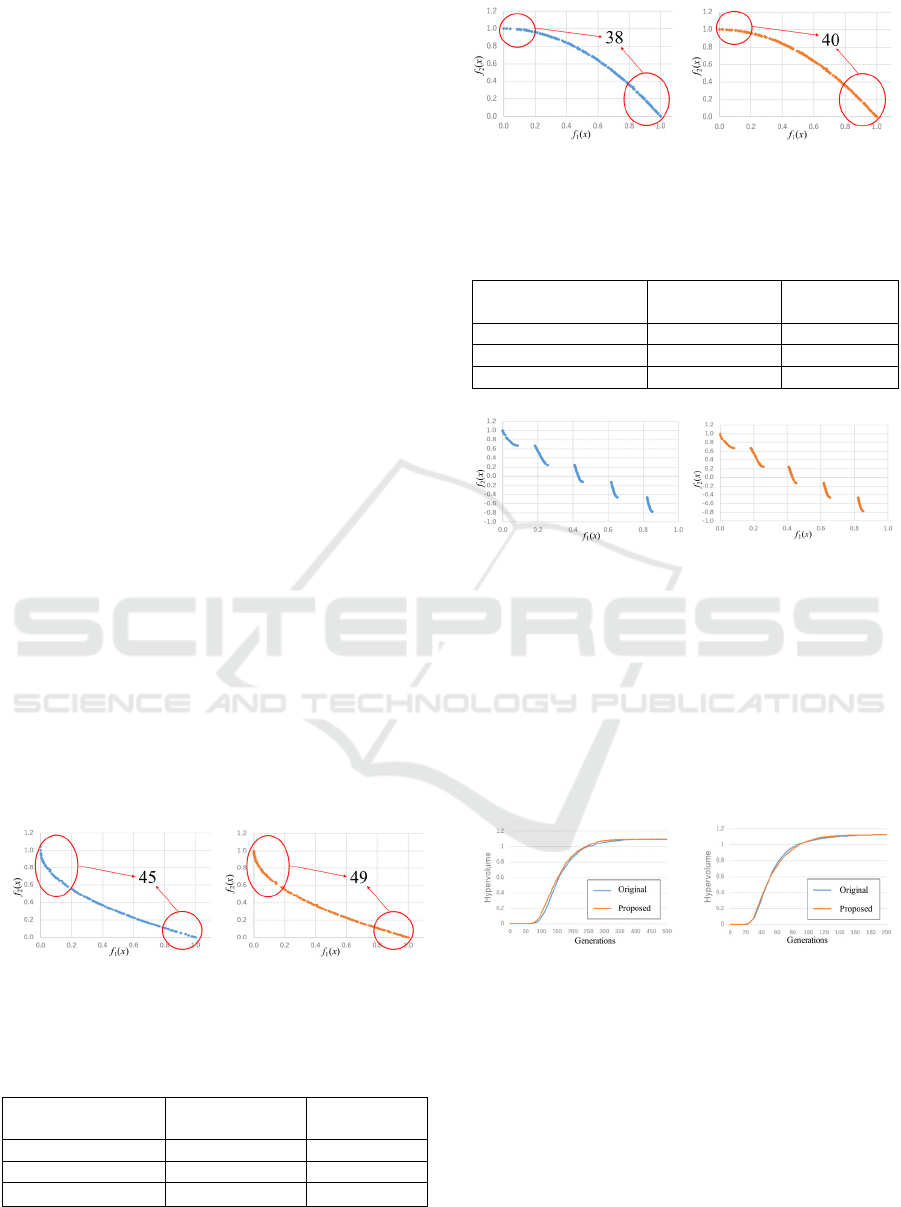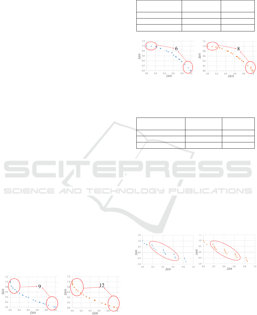 distance and were densely located on the Pareto front.