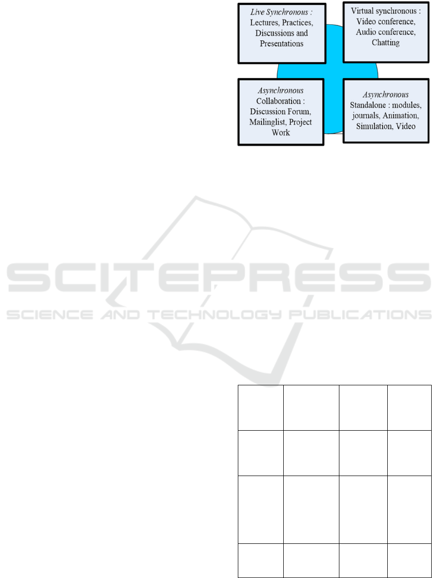 indicators in this study are live synchronous, virtual synchronous, independent synchronous and collaborative