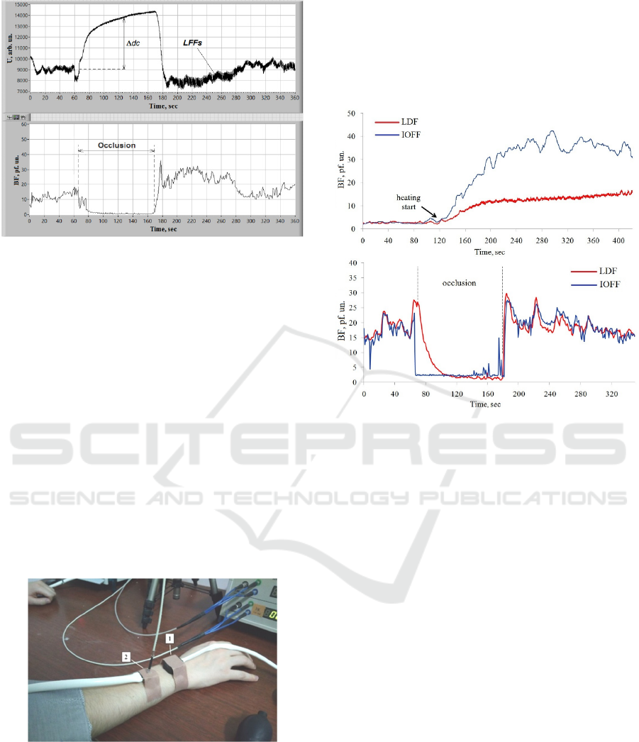 at arterial occlusions, while at heating tests IOFF