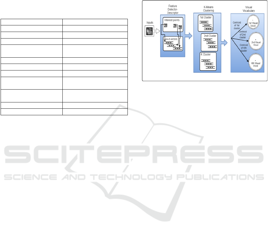 RCM images, a visual vocabulary is created by K-