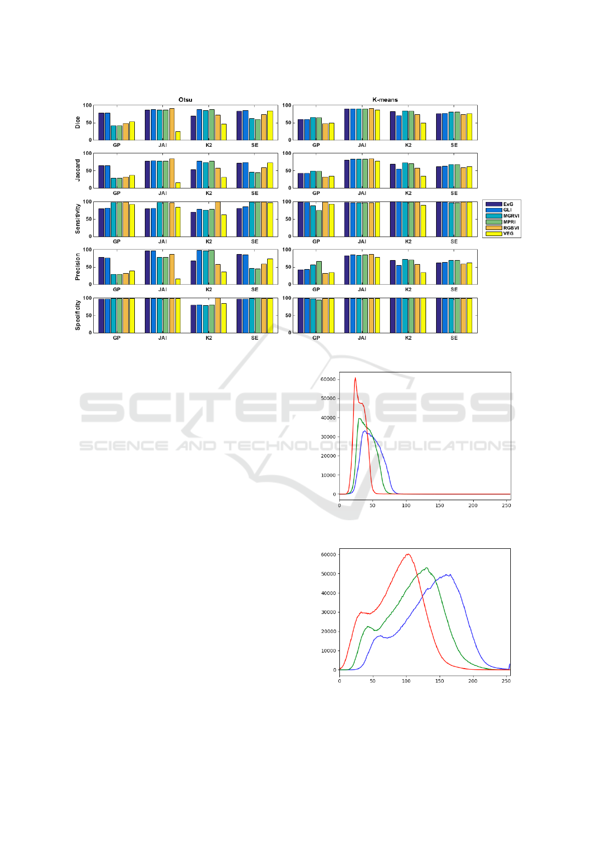 the application of five vegetation indices for RGB images together with two binarization techniques for the