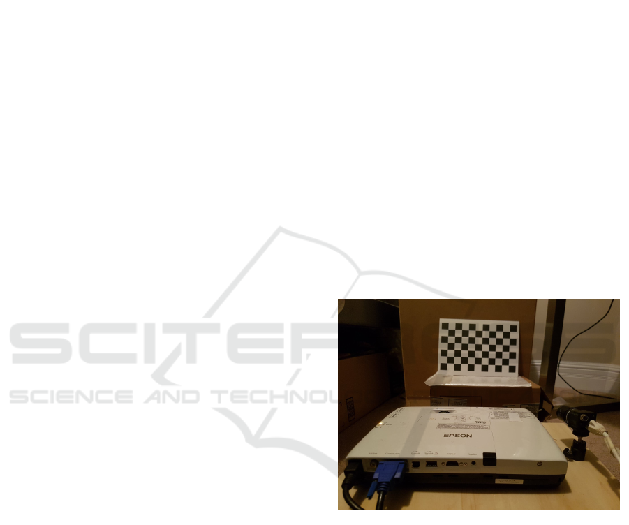 The projector is to project a chessboard onto a physi-