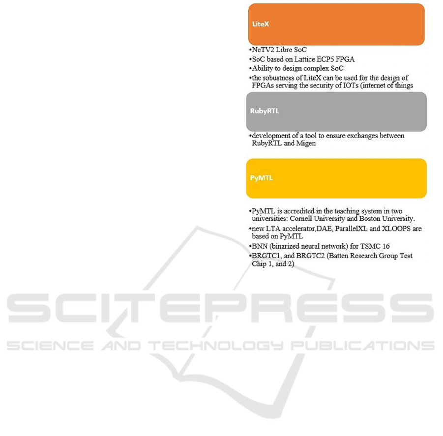 platform (Migen), PyMTL, and RubyRTL.