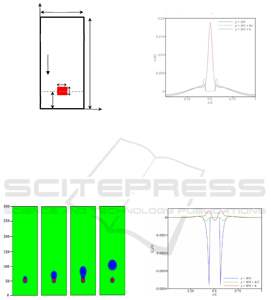 in the middle of the cavity in the x direction, the heat