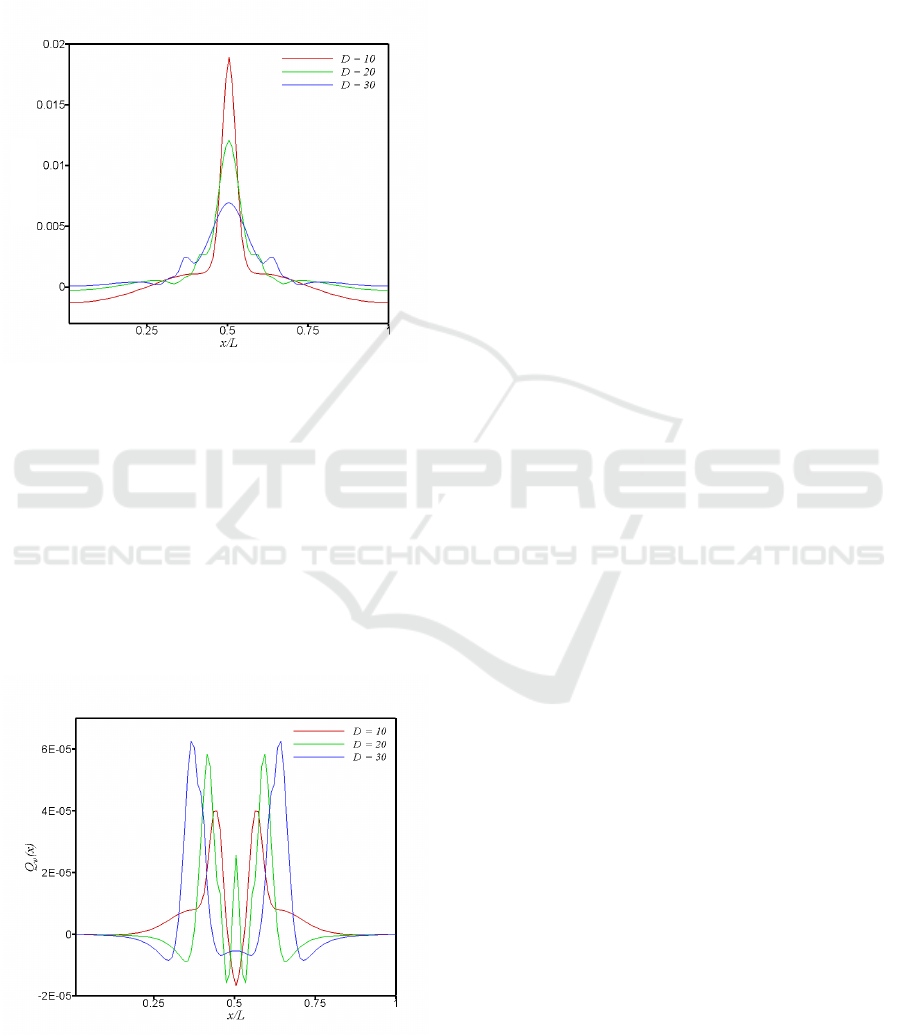 obstacle by varying the length D of the obstacle at y =