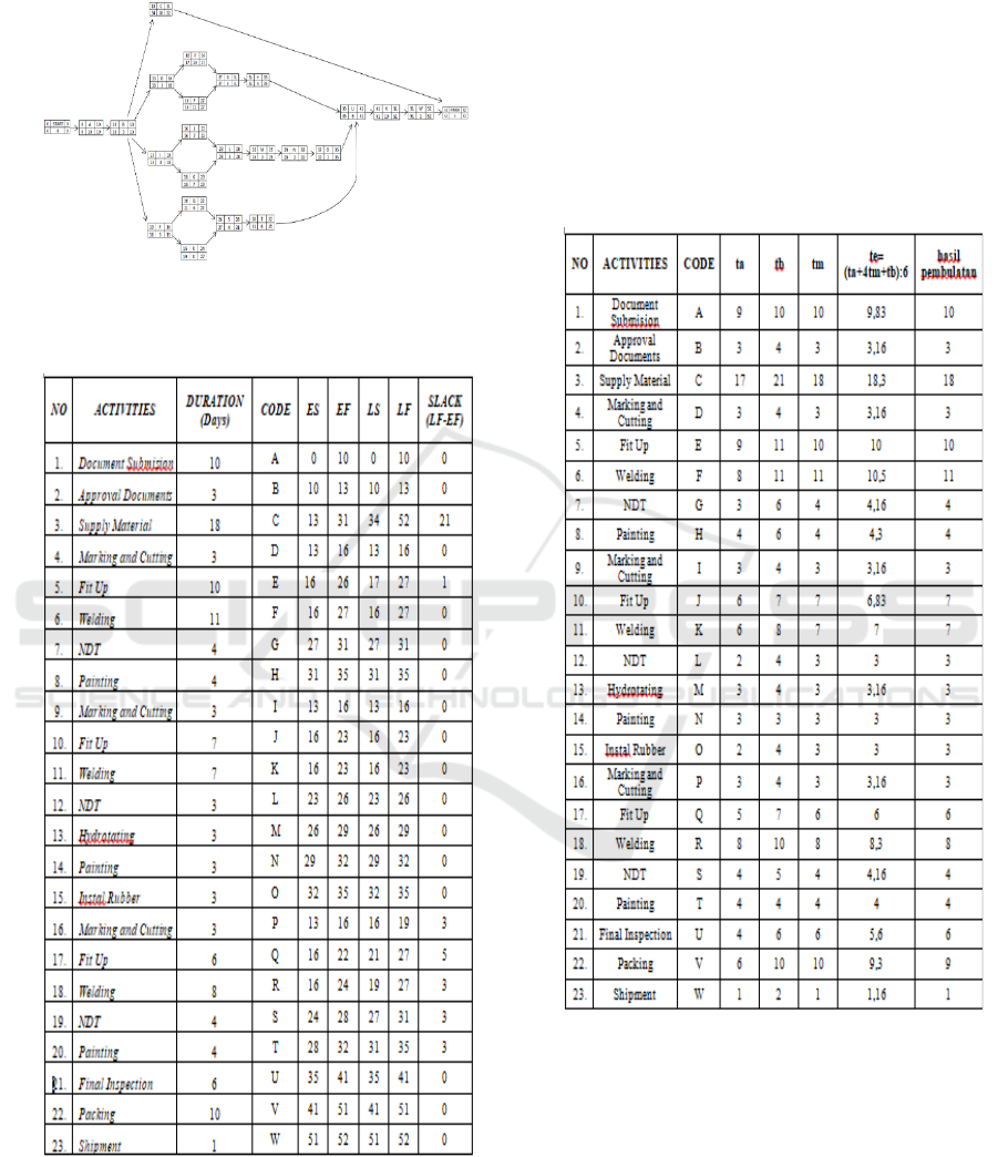methods. Each method has 3 critical paths, the result of scheduling the CPM method for 52 days, according
