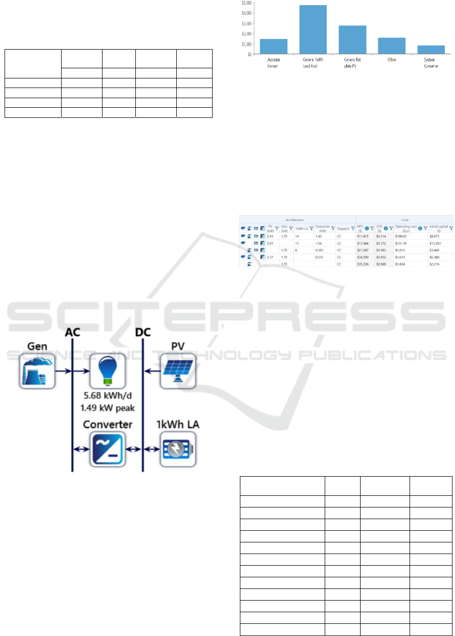 year and had the lowest COE of 0,307 $/kWh. This