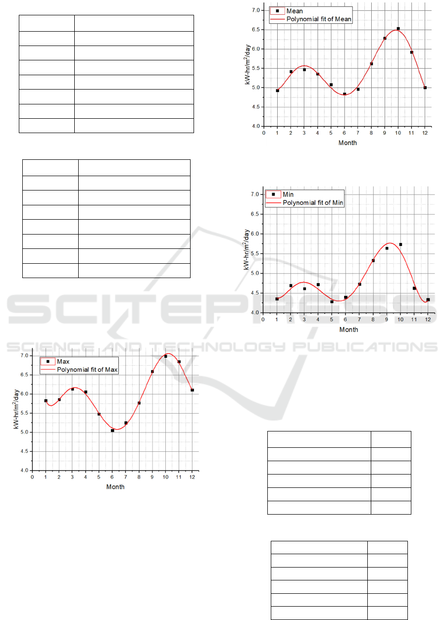 mean, and minimum insolation value in supporting