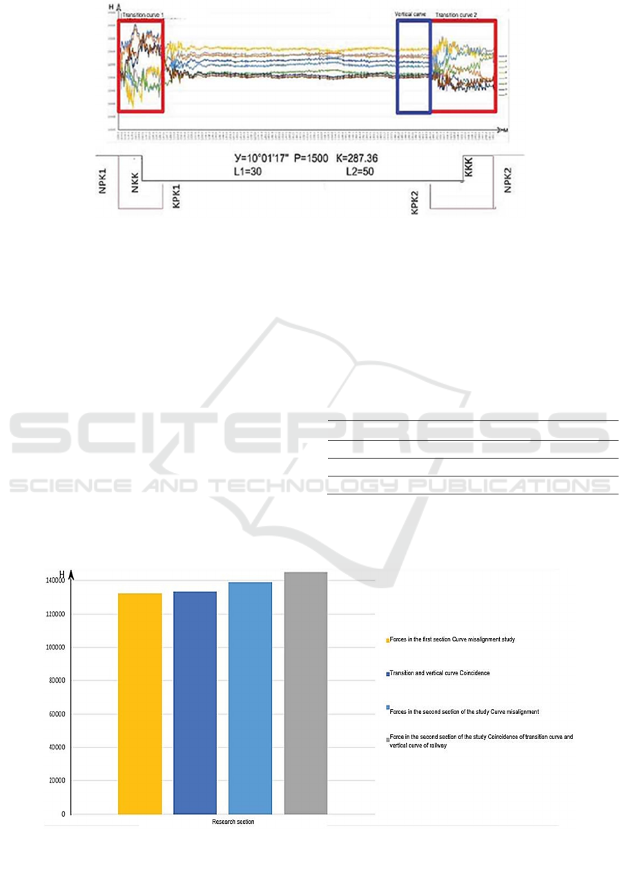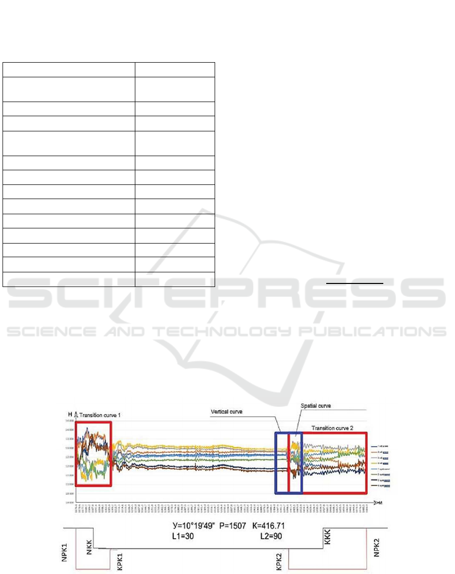the Sverdlovsk railway where, during operation, the transition curve was superimposed in terms of the vertical