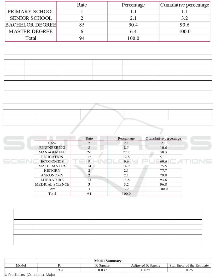 screening, a total of 94 valid questionnaires were