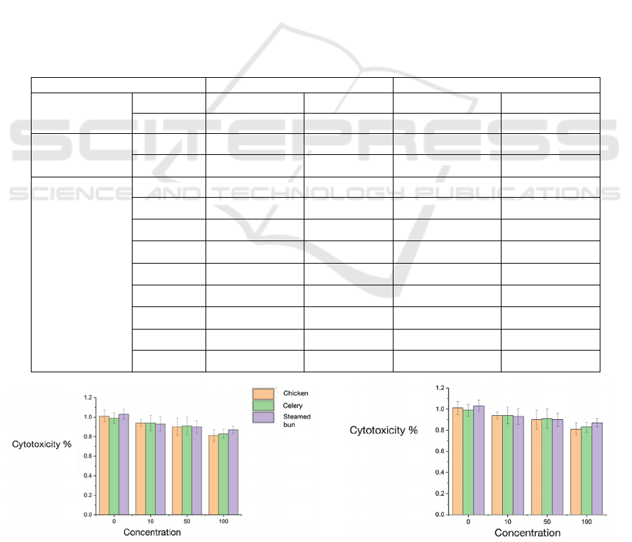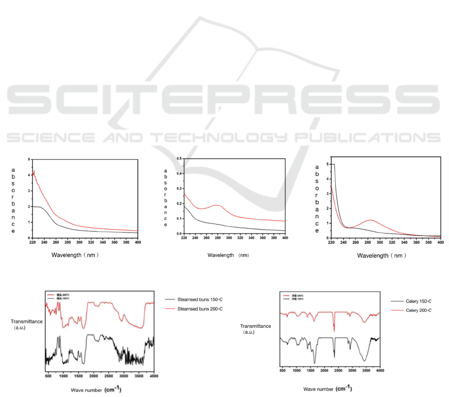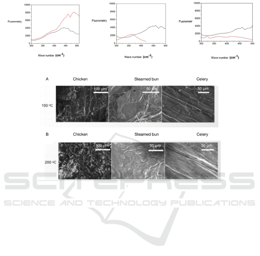 Table 1: The dewatering quantity of chicken, steam bun and celery after baked at 150℃ and 200℃.