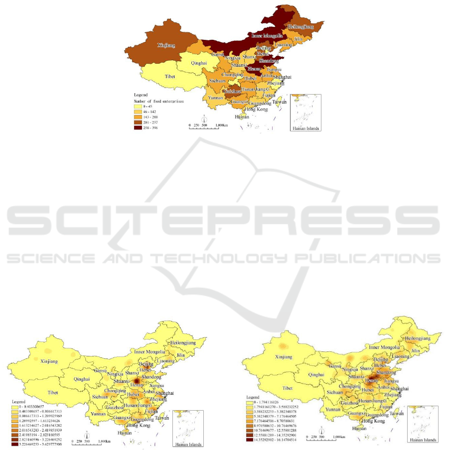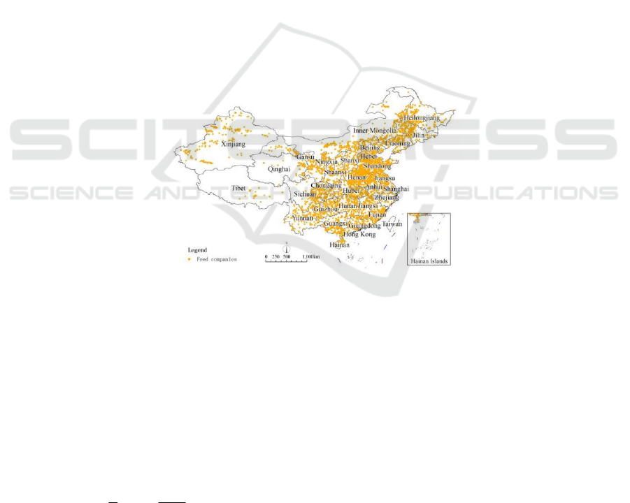 in the spatial agglomeration level of feed enterprises